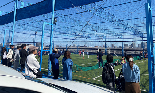 ゴールが倒れそうになるほどの強風の中、選手のみなさんは一生懸命に、